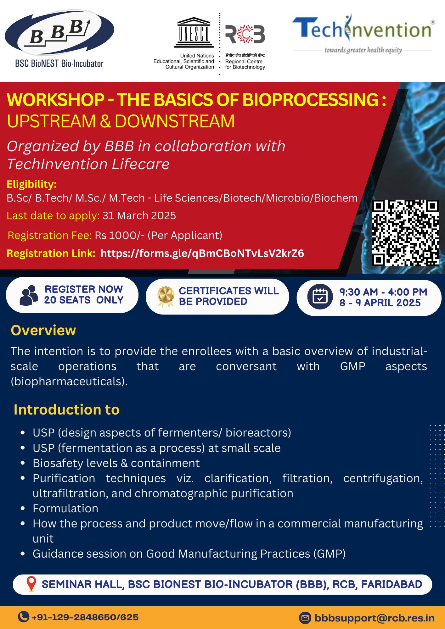 Workshop on "The Basics of Bioprocessing: Upstream & Downstream" - 8- 9 April, 2025